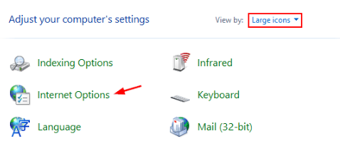 2. Select “Internet Options”: