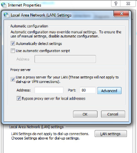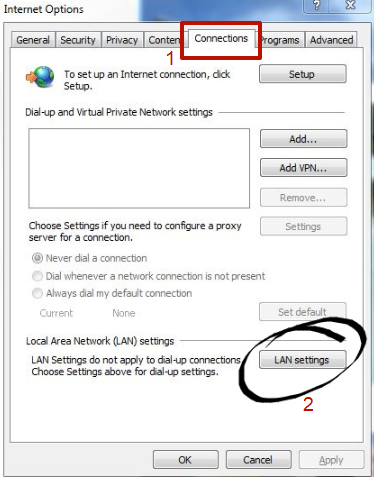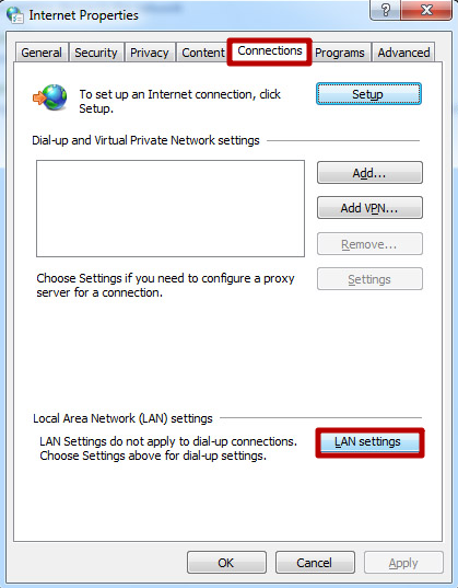 3. In the “Connections” tab, press the “LAN settings” button: