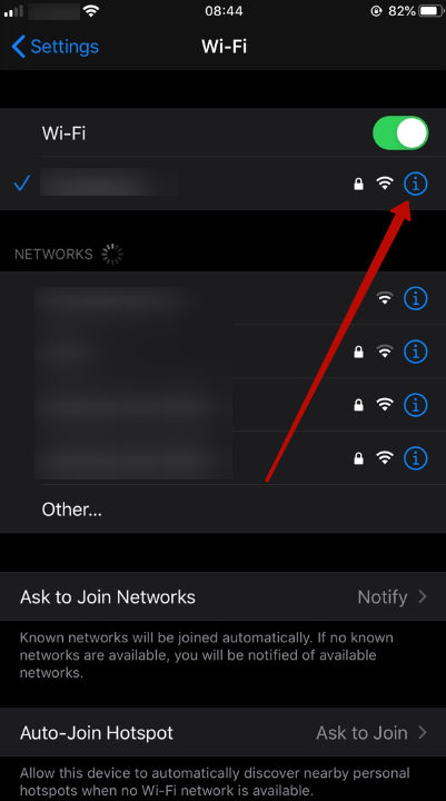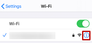 2. Bağlı olduğunuz Wi-Fi ağının yakınında bulunan "i" düğmesine basın: